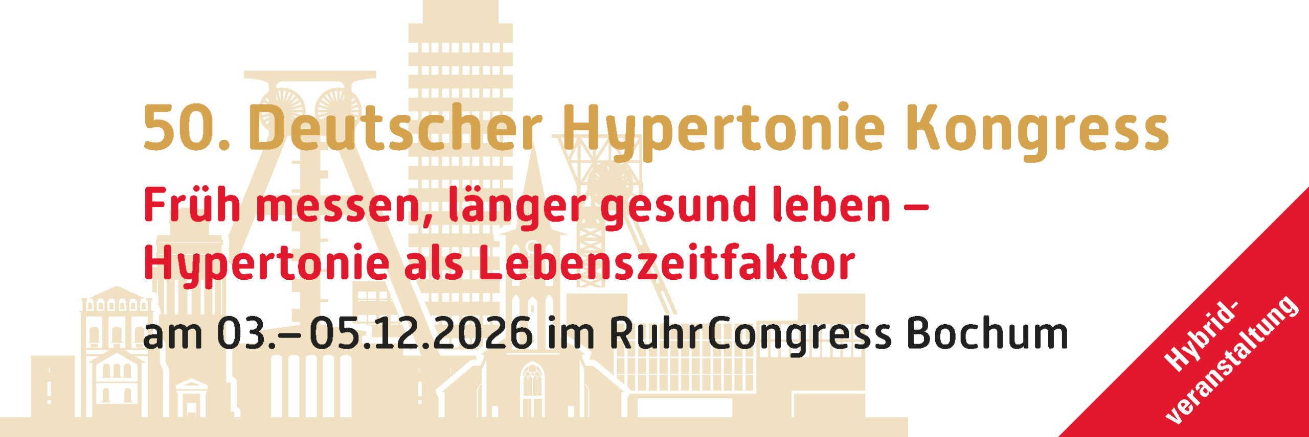Herzlich möchte ich Sie einladen, mit uns gemeinsam diese und weitere Schwerpunkte zu diskutieren im Rahmen des 50. Deutschen Hypertonie Kongress vom 3.-5. Dezember in Bochum. Im Herzen von NRW begrüßen wir Sie in einer Stadt, die wie kaum eine andere für Wandel und Transformation steht: Als Zentrum der Kohleindustrie geboren und zu einem modernen Wissenschafts- und Innovationsstandort herangewachsen. Mit dem Bochumer Slogan „Hier wo das WIR noch zählt“ wird zudem die Deutsche Hochdruckliga ideal beschrieben: Nur mit Ihnen gemeinsam können wir die so wichtige interdisziplinäre Zusammenarbeit gestalten – in Bochum und darüber hinaus!